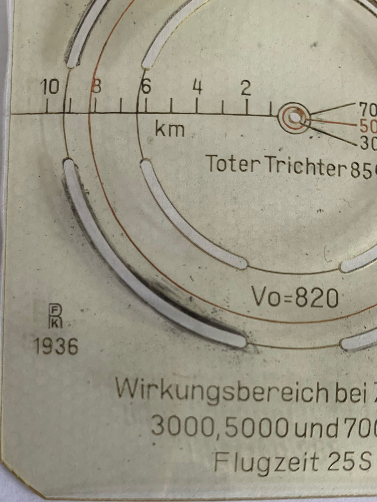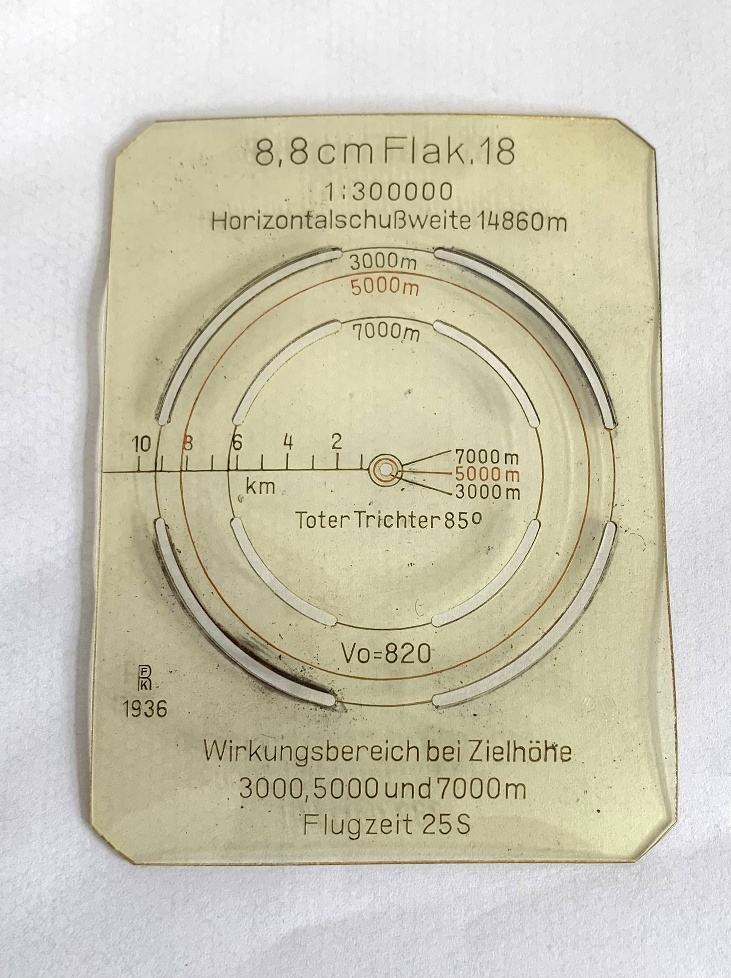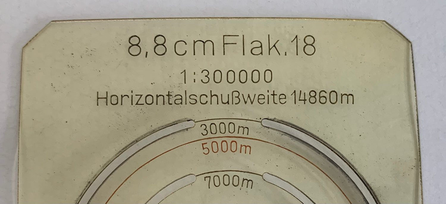 This rare WW2 German 88mm Flak Range Aid is dated 1936. It is made of plastic and is used with a map to plot distances. See pictures